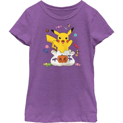 Kids' Girl's Pokemon Halloween Pikachu Bag Of Candy Graphic T-shirt In Purple
