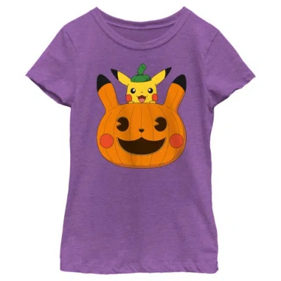 Kids' Girl's Pokemon Halloween Pikachu Jack-o'-lantern Graphic T-shirt In Purple