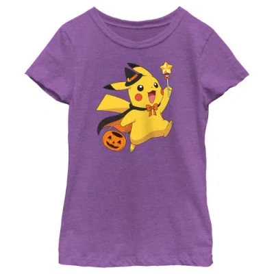 Kids' Girl's Pokemon Halloween Pikachu Witch Costume Graphic T-shirt In Purple