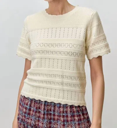 Janelle Crochet Knit Short Sleeve Top In Ivory In White