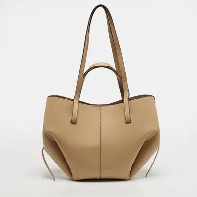 Cyme Mini Beige Leather Tote In Sand