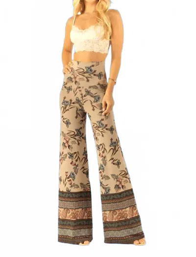 Nastasha Floral Print Palazzo Pants In Taupe In Neutral