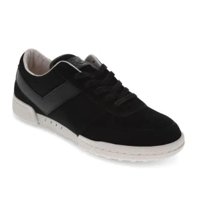 Mens Linebacker Lux Genuine Leather And Suede Premium Lace Up Athletic Sneaker Shoe In Black