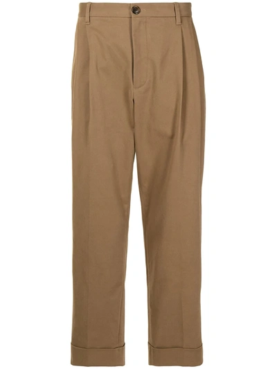 Turned-hem Straight-leg Trousers In Braun