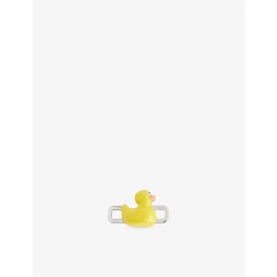 Mens Yellow Rubber Duck Rhodium-plated Sterling-silver Enamelled Charm In Metallic