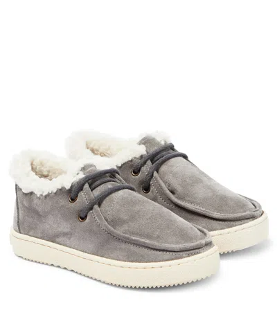 Kids' Printed Calf Hair And Suede Sneakers In Brown