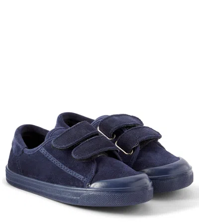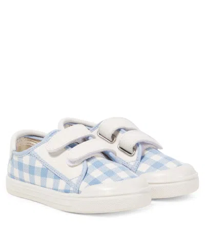 Kids' Leather-trimmed Gingham Sneakers In Blue