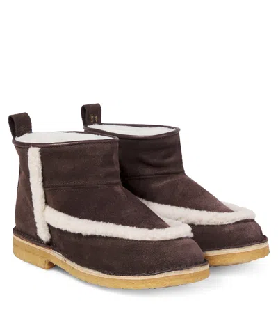 Kids' Shearling-trimmed Suede Ankle Boots In Brown