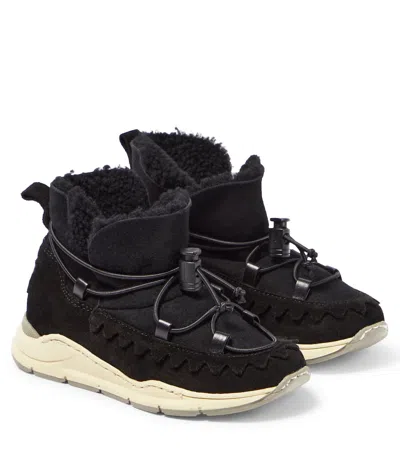 Kids' Shearling-trimmed Suede Ankle Boots In Brown