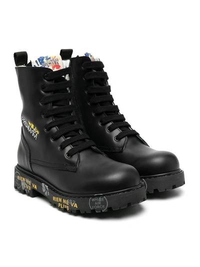 Kids' Lace-up Embroidered Logo Boots In Black