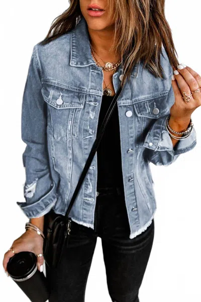 Denim Distressed Raw Hem Jacket In Blue