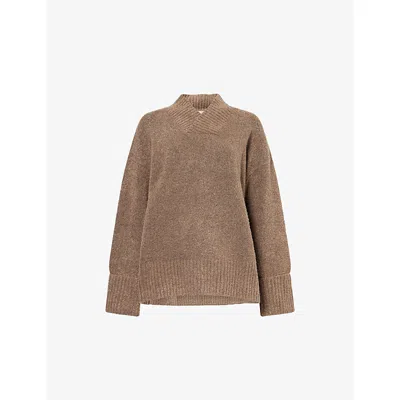 Womens Dark Beige Lorrie Dropped-shoulder Knitted Cardigan In Brown