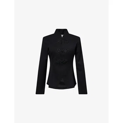 Womens Black Maeve Square-neck Faux-leather Waistcoat