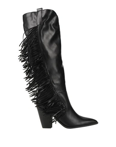 Woman Knee Boots Black Size 10 Textile Fibers