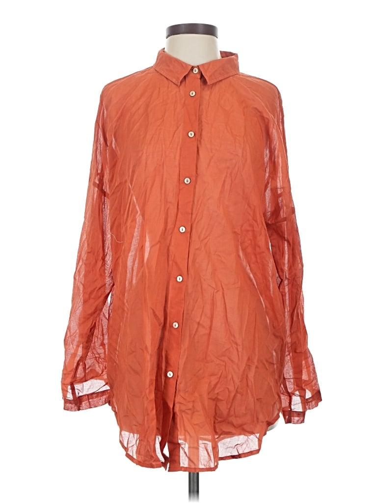 3/4 Sleeve Button Down Shirt In Orange
