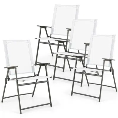 Set Of 4 Patio Folding Chair Set With Rustproof Metal Frame - White