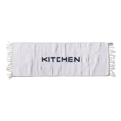 Handloomed Recycle Yarn Kitchen Mat In Blue