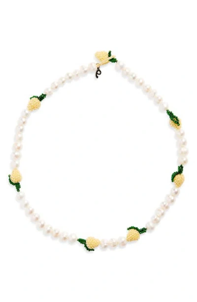 Freshwater Pearl Lemon Necklace In Pearl/yellow/green