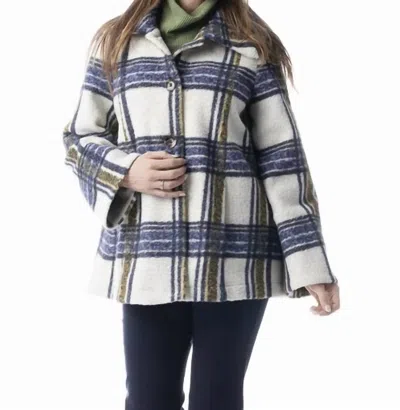 Plaid Teddy Jacket In Ivory/blue/green In Multi