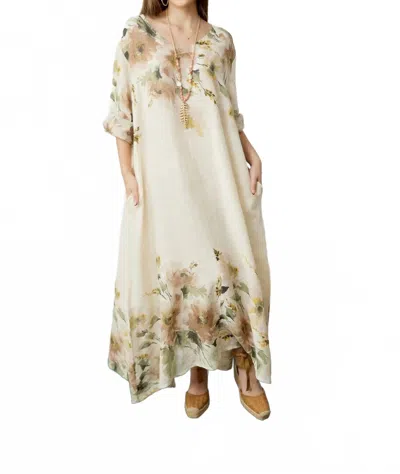 Westley Floral Print Linen Dress In Beige In Neutral