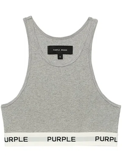Logo-tape Cotton Sports Bra In Grey