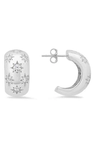 Cubic Zirconia Pavé Square Hoop Earrings In Silver