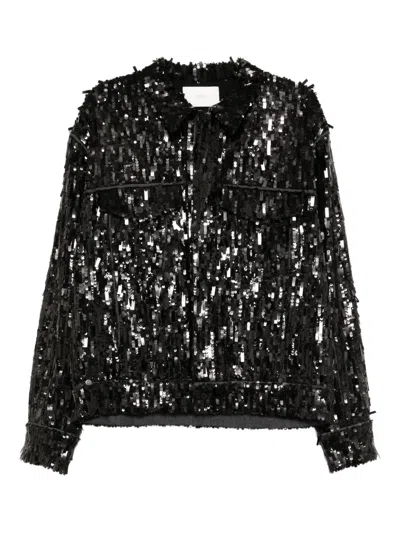 Sequin-embellished Shirt Jacket In Black