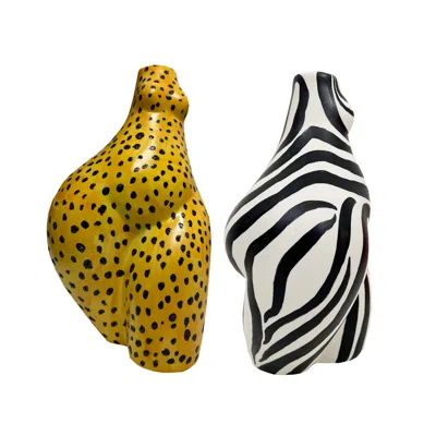 Black / White Zebra Stripe Womens Body Vase In Multi