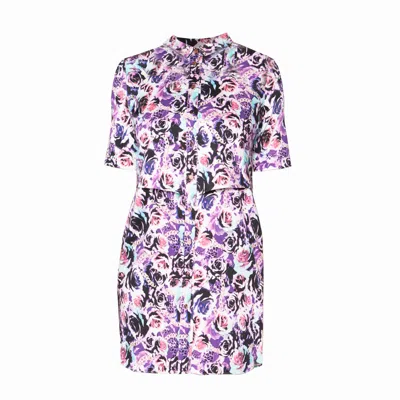 Women's Pink / Purple Retro Purple Rose Print Shirt Dress In Pink/purple