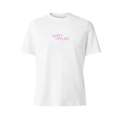 Women's White Happy Offline Embroidered Pink T Shirt