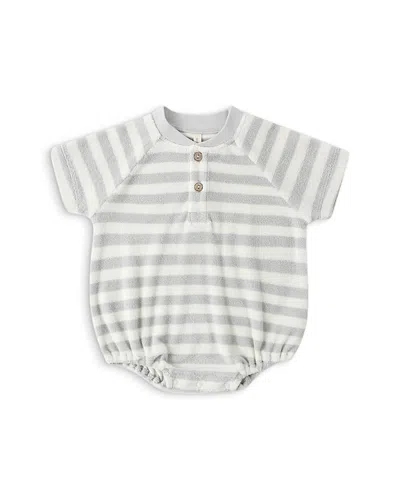 Boys' Terry Henley Striped Romper - Baby In Gray