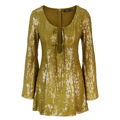 Women's Green Harlow Dress In Khaki Sequins