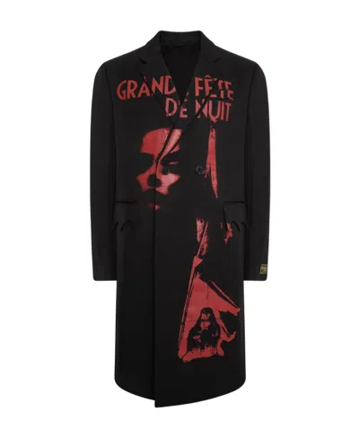 The Raf Simons edit is punctuated with flamboyant pieces in vivid colors alongside sleek, dark fabrics that lend an understated twist to the house aesthetic. The range encompasses fitted styles with vivid and grayscale graphics and artistic decorations.