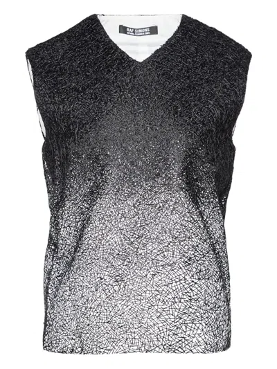 The Raf Simons edit is punctuated with flamboyant pieces in vivid colors alongside sleek, dark fabrics that lend an understated twist to the house aesthetic. The range encompasses fitted styles with vivid and grayscale graphics and artistic decorations.