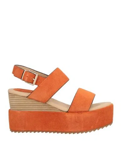 Woman Sandals Orange Size 7 Leather