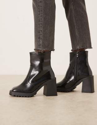 Sugar Block Heeled Ankle Boots In Black