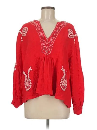Pre-owned Long Sleeve Blouse In Red