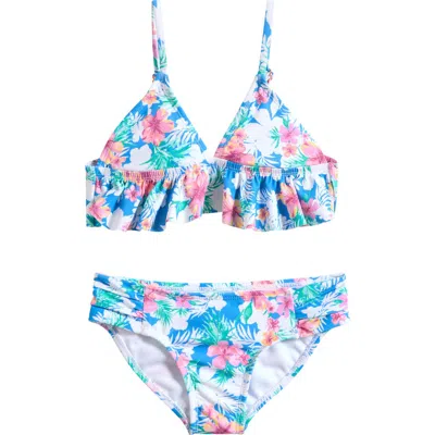 Kids' Tropical Ruffle Two-piece Swimsuit In Blue