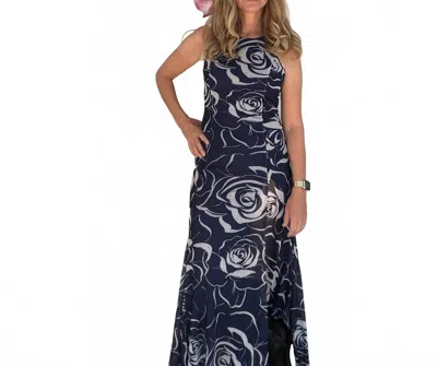 Bold Mesh Print Maxi Dress In Navy In Blue
