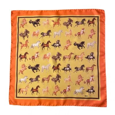 Women's Yellow / Orange / Brown Majestic Horses Silk Scarf Orange In Multi
