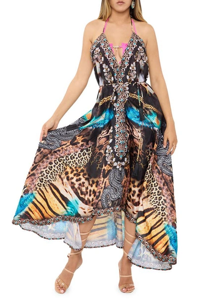 Embellished Halter Maxi Dress In Black