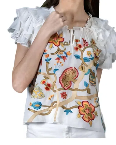 Embroidered Top In White In Multi