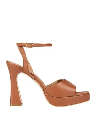 Woman Sandals Tan Size 6 Leather In Brown