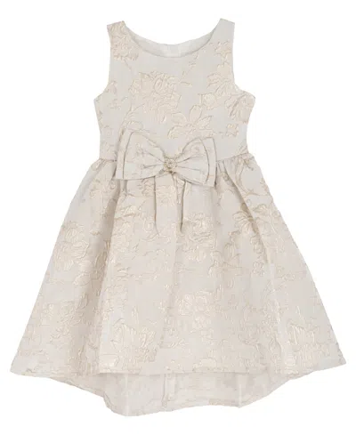 Kids' Girls 2t-6x Round Neck Shimmery Bow Detail Dress In Neutral