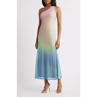 Blur Print One-shoulder Cocktail Minidress In Blue