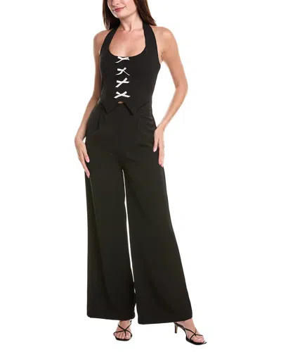 Trendy Perspective Black Bow Cutout Halter Jumpsuit