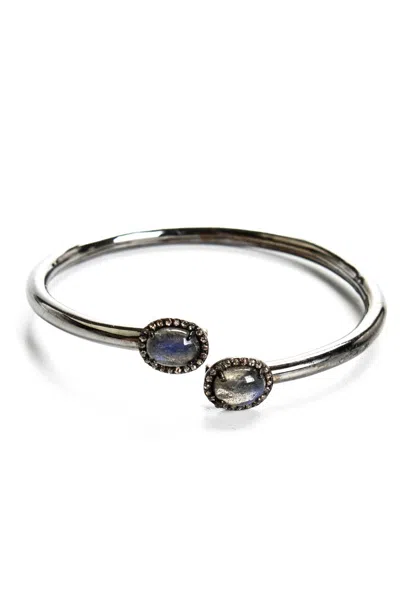Womens Sterling Silver Labradorite Diamond Halo Bangle Bracelet 13g 8"