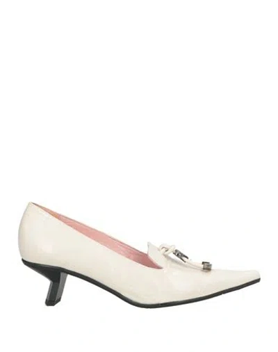 Woman Pumps Cream Size 8 Textile Fibers In White