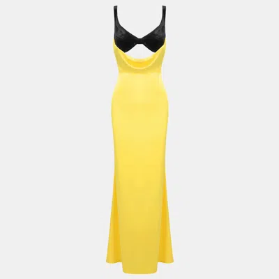 Pre-owned Yellow Velvet And Satin Cut-out Maxi Dress Xs