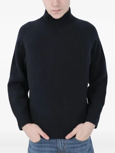 Roll-neck Ribbed Sweater In Blue